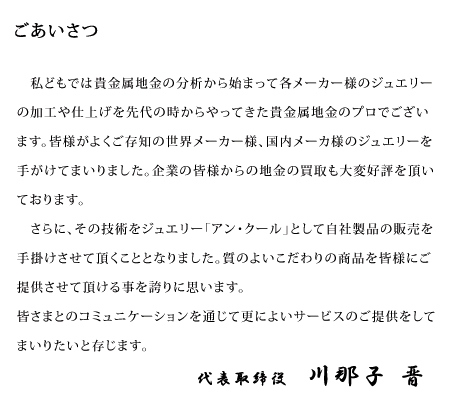 ジュエリー販売・貴金属分析・貴金属加工・貴金属買取・貴金属販売・